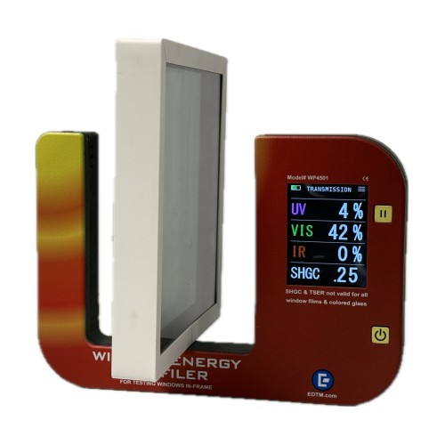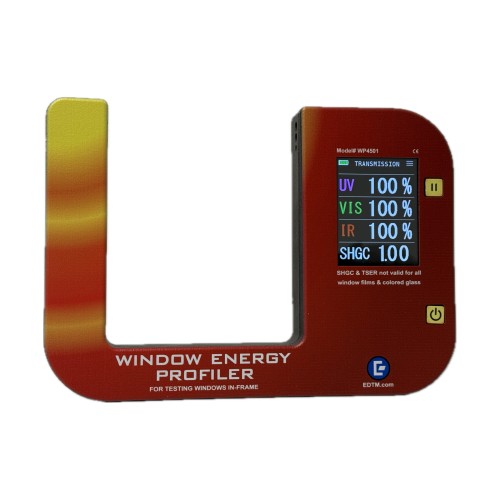 Test the energy performance of installed windows. The Window Energy Profiler has a large enough opening to fit over the window sash of an installed window. The WP4501 displays four real-time measurements of windows: the estimated SHGC value along with the UV, Visible Light, and Infrared Transmission values.
